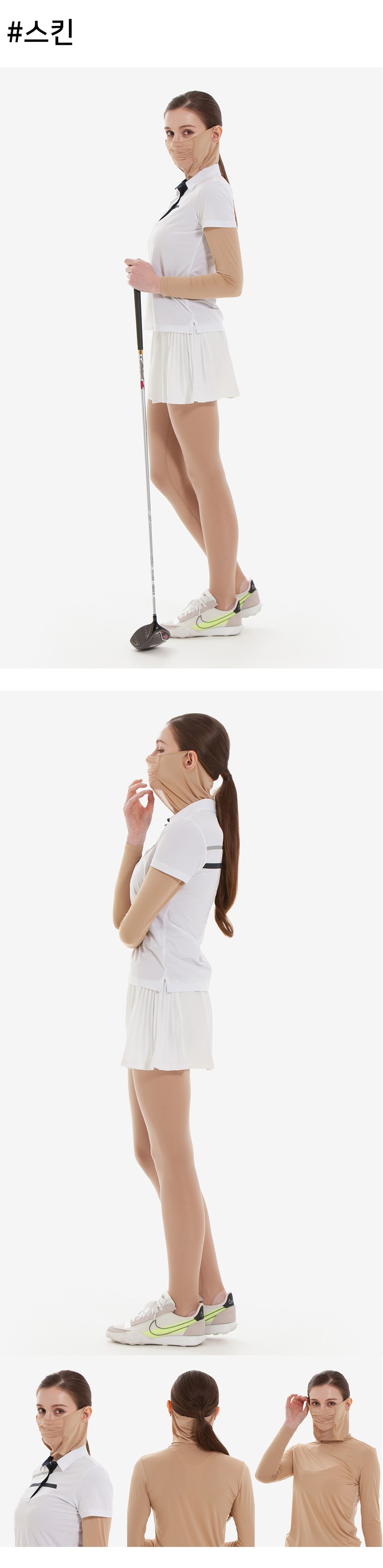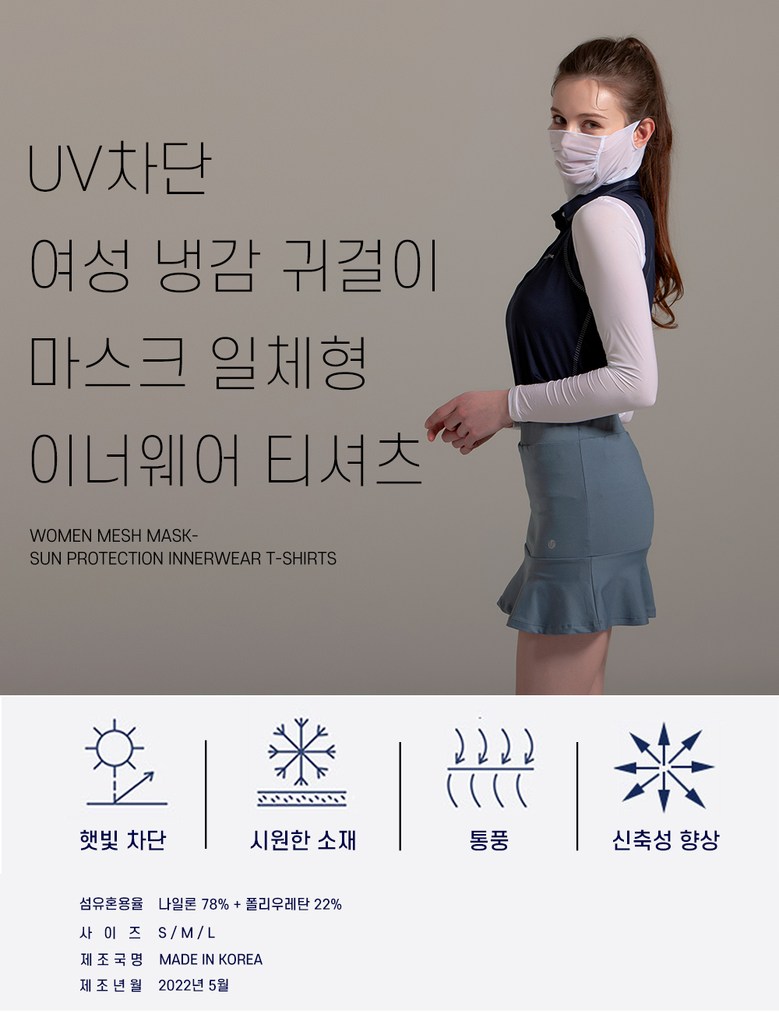 여성 UV 차단 일체형 냉감 귀걸이 매쉬 이너웨어 티셔츠 (3색상)