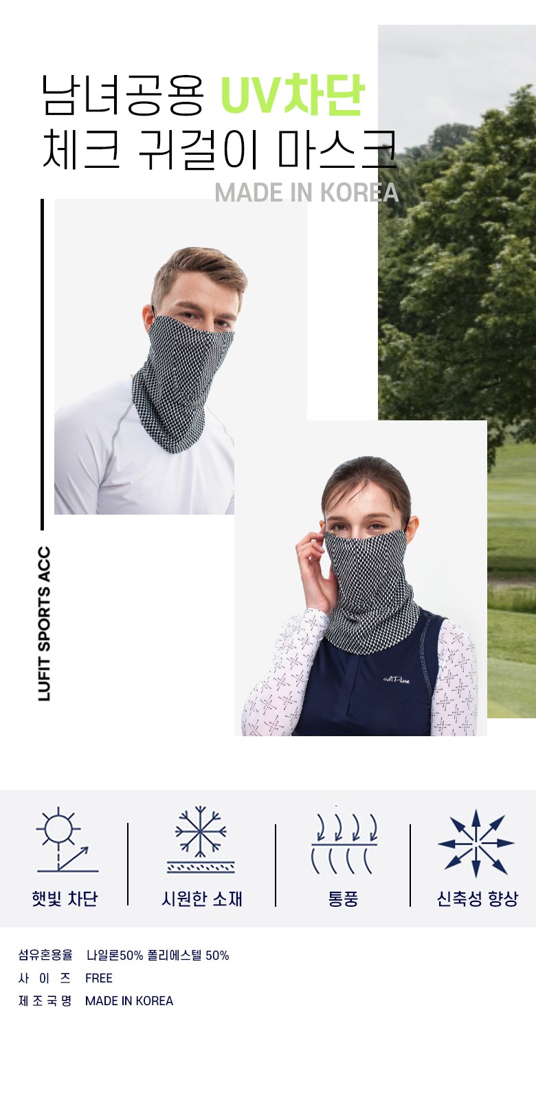 남녀 체크 얼굴 햇빛 가리개 (뒤오픈형)