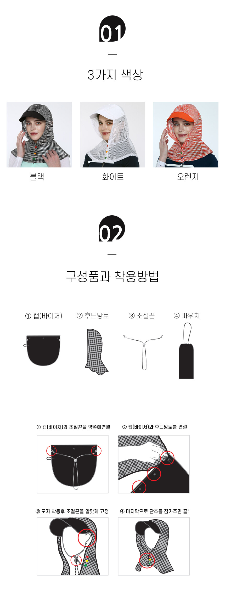 UV차단 햇빛가리개 캡 모자 오렌지