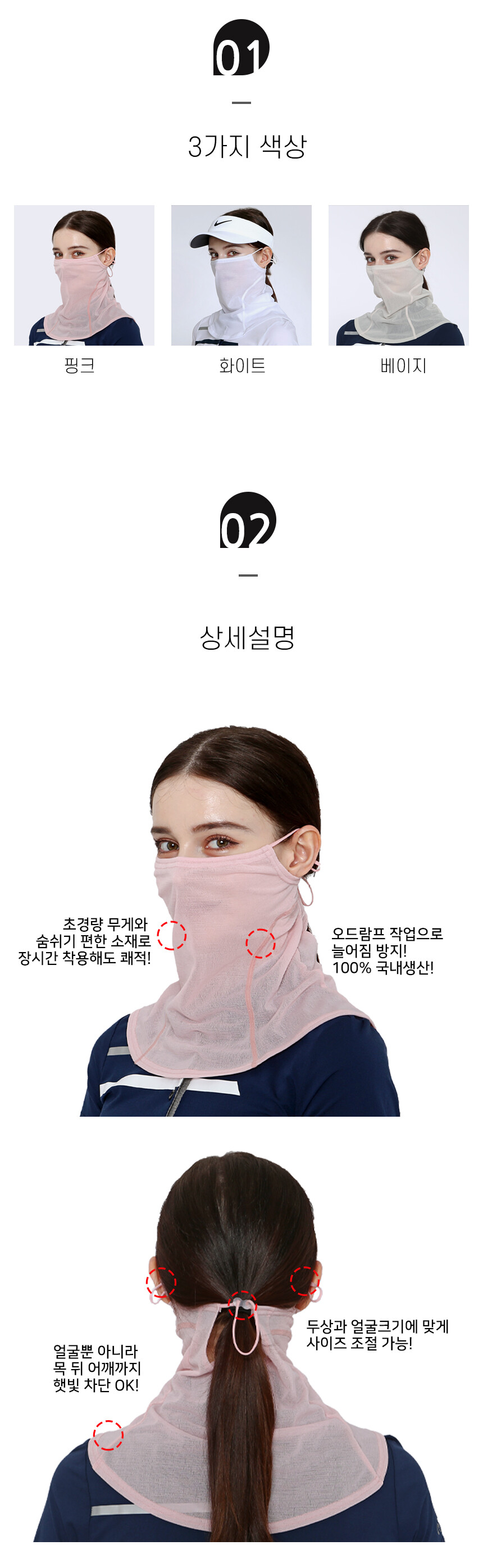 여성 햇빛차단 통풍 매쉬 마스크 화이트