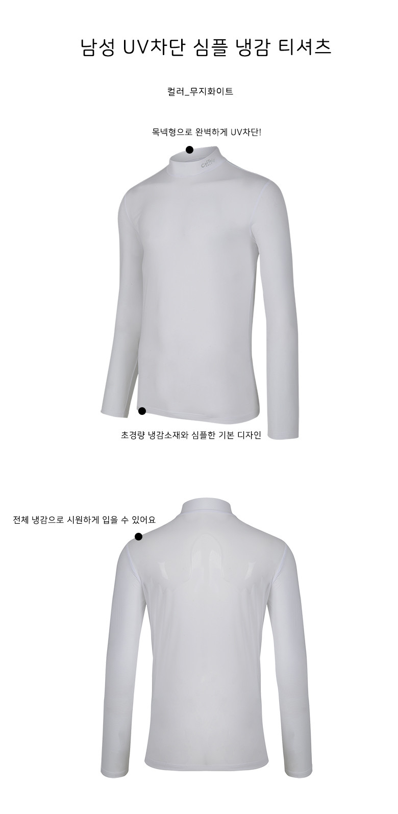남성 목넥 냉감 롱티셔츠(전체냉감)_무지화이트