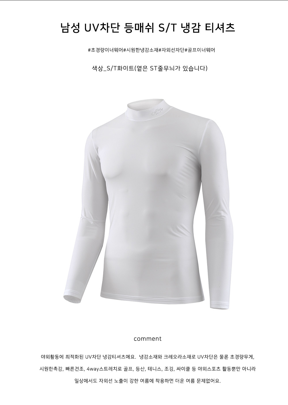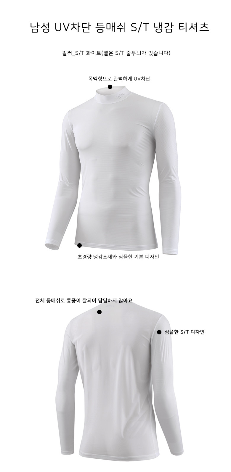 남성 목넥 냉감 롱티셔츠(등매쉬)_ST화이트