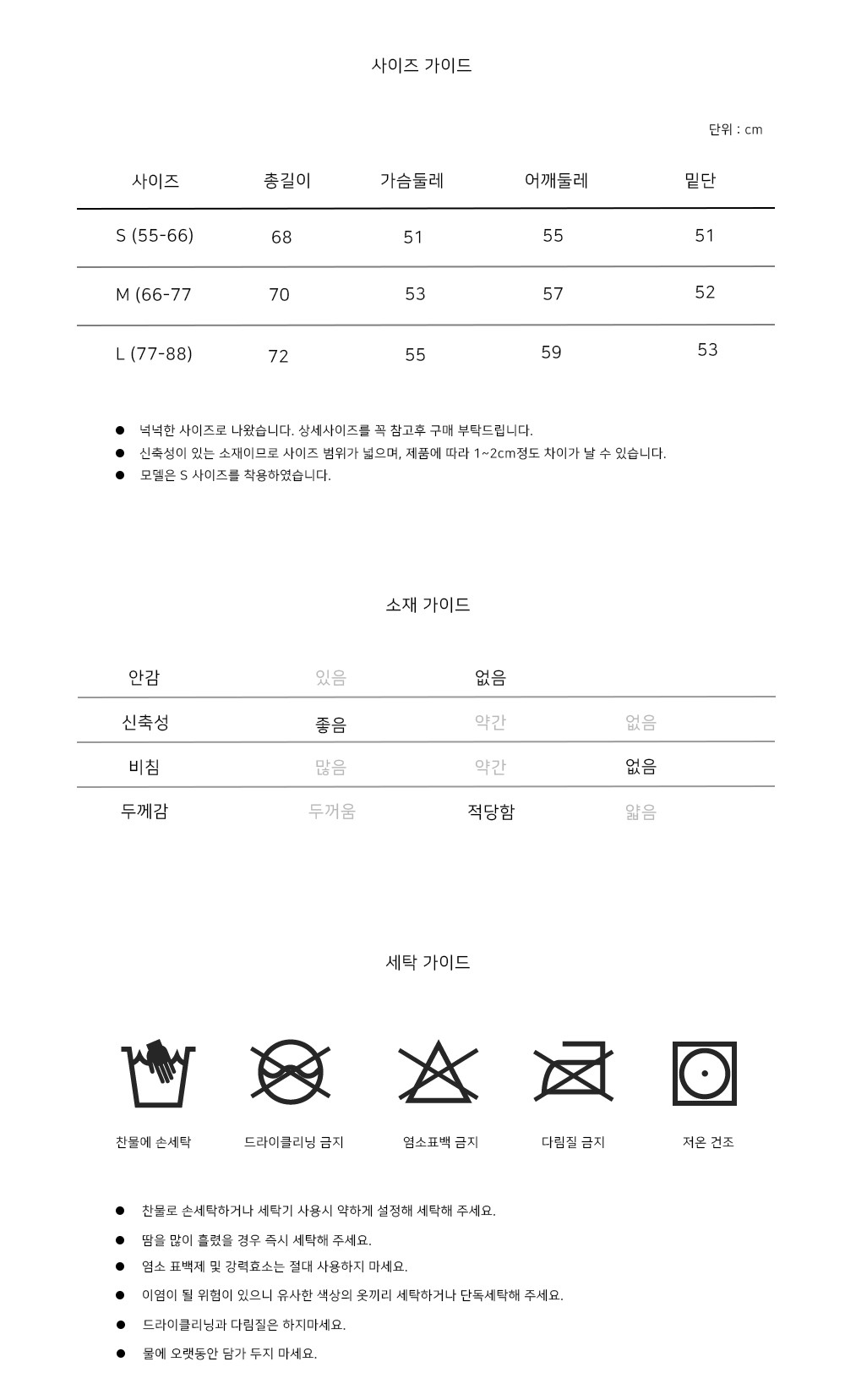 부드러운 터치감으로 땀흡수가 잘되고 어디에나 쉽게 매치하여 입을 수 있어요!
