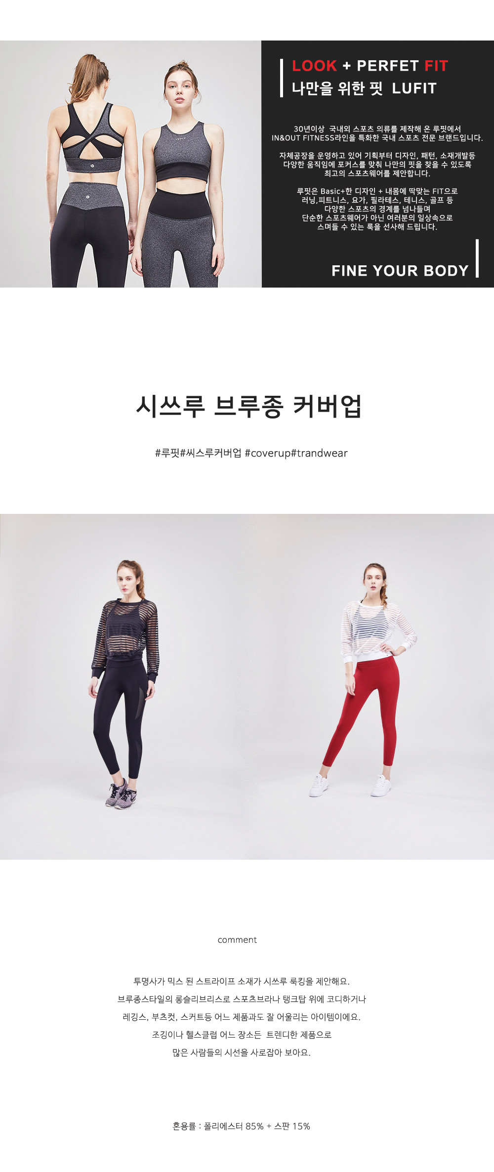 브루종스타일의 롱슬리브리스로 스포츠브라 또는 탱크탑 위에 코디하거나